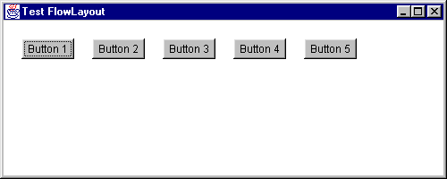 Die Klasse FlowLayout stellt den einfachsten Layoutmanager dar. Alle Elemente werden so lange nacheinander in einer Zeile angeordnet, bis kein Platz mehr vorhanden ist und in der nächsten Zeile fortgefahren wird.