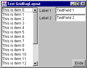 Abbildung 31.10: Das GridBagLayout-Beispiel nach dem Skalieren