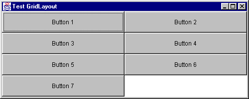 Das folgende Beispiel zeigt ein Fenster mit einem Gitter der Größe 4*2 Elemente, das ingesamt sieben Buttons anzeigt: