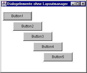Das folgende Listing demonstriert diese Vorgehensweise am Beispiel einer treppenartigen Anordnung von fünf Buttons: